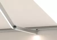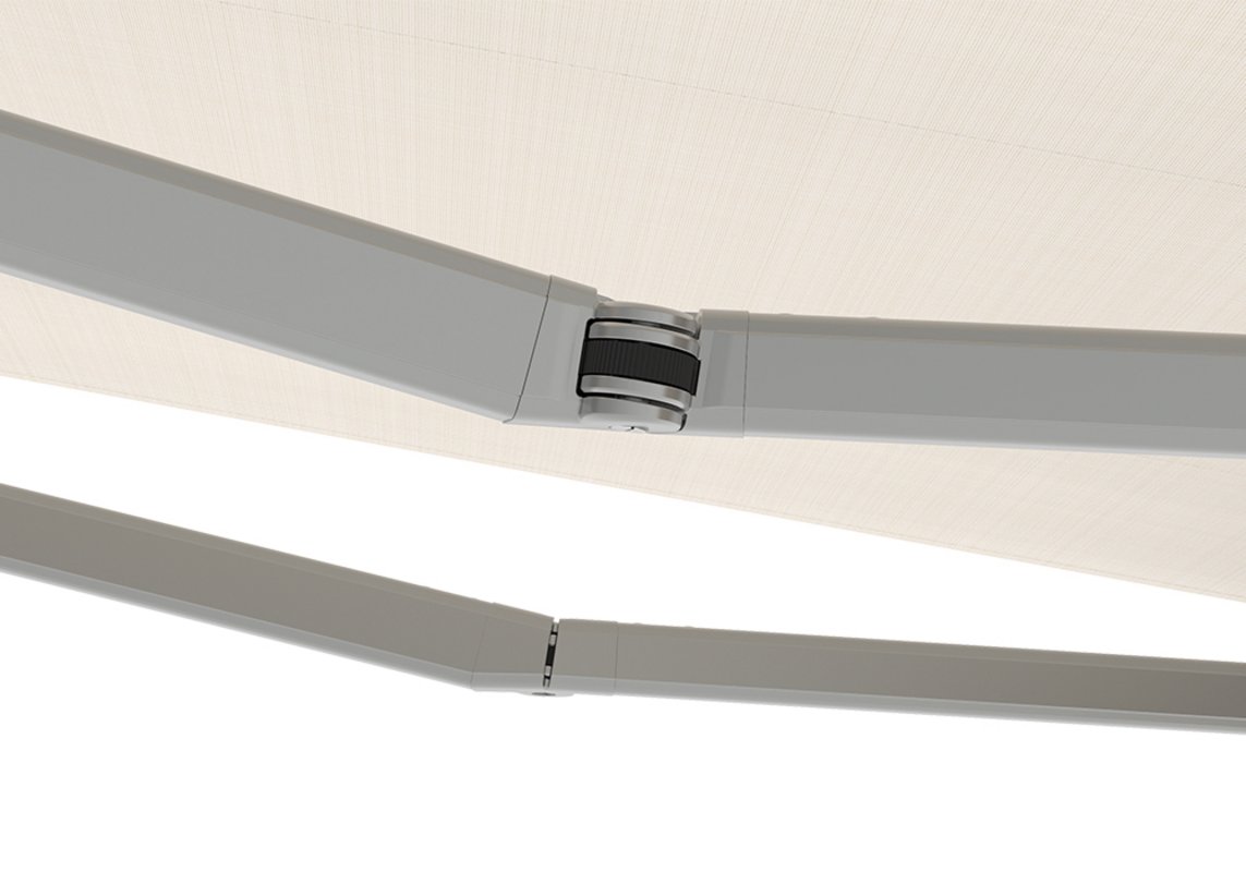 AREIA 7040 ist eine Allroundmarkise, die überlegene Technik auch visuell demonstriert. Konstruktive Details sind elegant gestaltet und Teil des Designkonzepts, vom Tuch und Armlager bis zu den Gelenkarmen. Das Profil dieser Markise ist schmal, ihre Stabilität enorm und die Funktionalität beeindruckend. AREIA 7040 ist auf Wunsch kuppelbar, kann mit LEDs zum stimmungsvollen "Beleuchtungskörper" werden und mit einem HELLA-Varioplus-Rollo effizient vor Blicken schützen.
