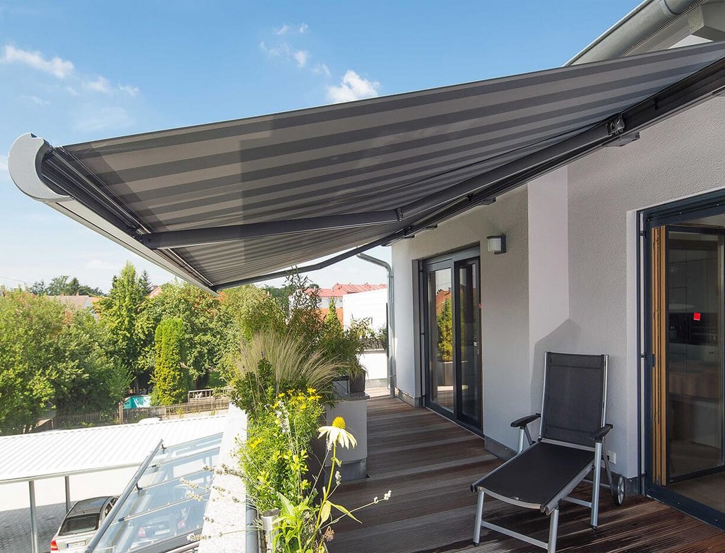- Um optimalen Schutz zu gewährleisten, empfehlen wir die Markise mit Variovolant, der bis zu 160 cm ausfällt. Der Variovolant bietet nicht nur exzellenten Sonnenschutz, selbst bei tiefstehender Sonne, sondern schützt auch vor neugierigen Blicken.