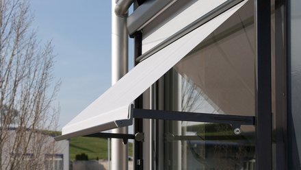 Die moderne Fassadenmarkise mit Fallarm: clever, kombiniert, stufenlos