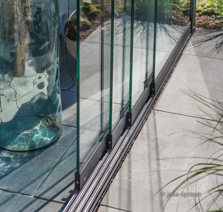 - Kinderleichtes Öffnen und Schließen der Glaselemente durch Edelstahl-Laufschienen und Laufrollsystemen
