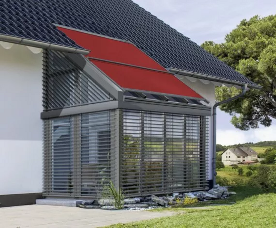 Mit ihrer flachen und kompakten Bauweise passt sie sich perfekt der Gestaltung von Wintergärten, Terrassendächern und Pergolen an und bietet Schutz vor Hitze- und Sonneneinstrahlung.